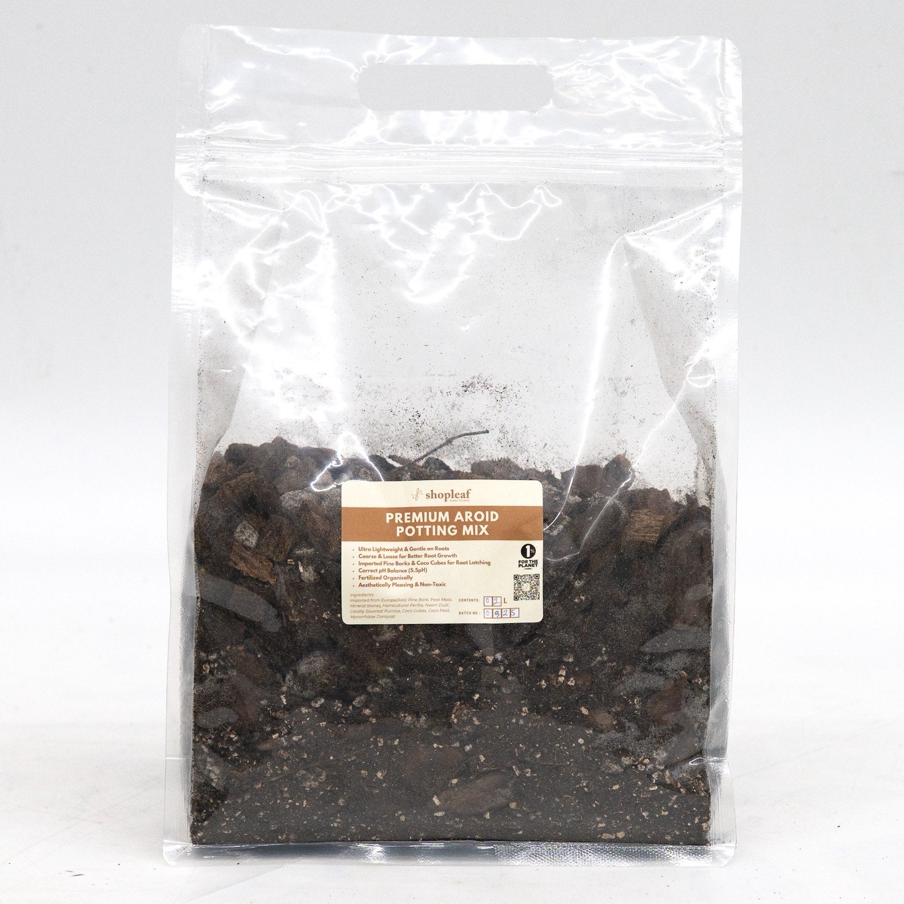 Our Aroid Potting Mix is specially formulated to create the ideal environment for tropical aroids. It is coarse and loose, allowing roots to breathe and expand with ease. The mix contains imported pine bark and coco cubes, which give roots something to cling to and encourage stronger growth. With a balanced pH of around 5.5, it supports healthy plant development while being enriched with organic fertilizers for steady nutrition. This mix is also clean and attractive, designed not to stain pots, and is made with only 100% organic and non-toxic ingredients—safe for both plants and your home.